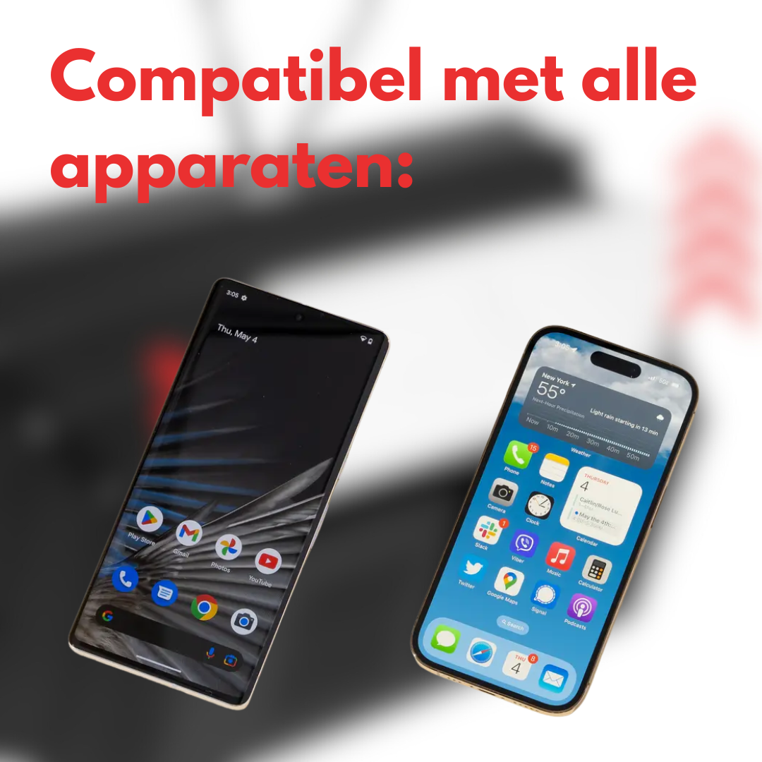 - Universeel compatibel – Werkt met alle smartphones (iOS & Android).